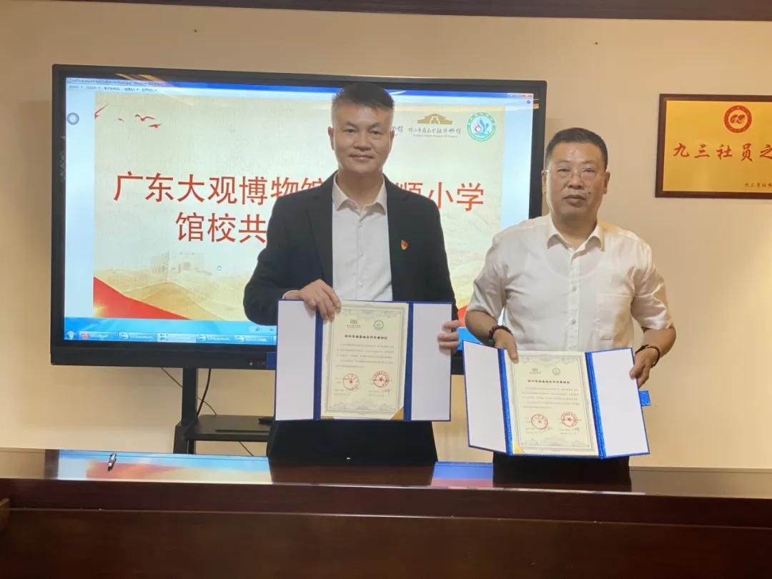 博物馆是传承历史文脉、弘扬优秀文化的重要阵地,更是滋养青少年心灵、培育文化自信的第二课堂。为充分激活馆藏文物的育人价值,推动博物馆资源与学校教育深度融合,让青少年在触摸历史、对话文物中厚植家国情怀,2025年12月23日,广东大观博物馆与南海区里水镇和顺小学“校外教学实践基地”共建签约仪式在广东大观博物馆隆重举行。此次签约标志着双方秉持“资源共享、优势互补、协同育人、共同发展”原则,开启协同育人新征程。 观物知史:沉浸式感受文物魅力![]() 签约仪式正式开始前,和顺小学的师生代表们在博物馆讲解员的带领下,有序参观了馆内四大展厅。讲解员结合丰富的馆藏文物,生动讲述了每件文物背后的历史渊源、文化内涵与时代价值,师生们认真聆听、不时驻足,沉浸式感受中华优秀传统文化的博大精深,为此次馆校合作奠定了良好的情感与认知基础。 ![]() ![]() ![]() 签约共建:馆校同心促教育![]() 里水镇教育发展中心龚志瑾、何庆丹等负责人,鲁岗村党委委员、纪委书记温志勇,和顺小学校长周华锋、专职副书记陈杏桦等校方代表,广东大观博物馆・佛山市岭南金融博物馆馆长丁方忠、副馆长丁泽钜及馆内综合部、宣教部、藏品部负责人出席仪式。 仪式上,丁方忠馆长与周华锋校长共同签署《共建特色校外教学实践基地合作协议书》。根据协议,双方将聚焦三大共建目标:一是充分发挥广东大观博物馆的文物资源、历史场景还原及文化体验项目优势,将其打造为和顺小学美育教学、传统文化传承与实践能力培养的重要阵地;二是依托和顺小学教育专业特色,丰富博物馆社会服务内容与形式,提升博物馆对青少年的吸引力及社会影响力;三是共同探索馆校合作育人新模式,为学生提供多元教育体验,助力培养德智体美劳全面发展的高素质人才。 ![]() 双方共同签署《合作协议书》 ![]() 馆校联动:活化馆藏育新苗![]() 此次合作内容丰富多元,将重点落地四大核心项目: 其一为“博物馆进校园”专项活动,广东大观博物馆每学年将组织一场流动展览进校园,让文物走出展厅、走进校园; 其二为“共享·共话”文化交流与影响力提升项目,双方将联合设计“小小讲解员”培训、文物复刻手工坊、历史文化主题班会等特色研学活动,并借助互联网技术实现校内课堂与博物馆“云端连线”,让学生足不出户即可沉浸式“走进”博物馆,感受传统文化魅力; 其三为“党建赋能 馆校携手”党建交流活动,双方将围绕课题研究、项目合作深化协同,定期开展由博物馆讲解员带队的主题党日参观活动,联合举办党建文化宣传活动及“红色文化浸润校园”党建文化节,以党建引领筑牢育人根基; 其四为“大观润心・和顺育德”文明共建项目,博物馆将把文明元素有机融入实践课程设计,双方还将在各自阵地设置“文明共建”宣传专区,并建立文明共建成果共享机制,实现文化育人与文明传播双向赋能。 ![]() 深耕合作:文博育人向未来![]() 本次签约仪式的成功举行,为双方深度合作奠定了坚实基础,既是对“让文物活起来”理念的生动践行,也是构建学校、博物馆、社区协同育人体系的有益探索。后续,双方将持续深化合作内容,创新活动形式,让博物馆这所“大学校”真正融入青少年成长过程,共同书写文化传承与教育发展的新篇章。